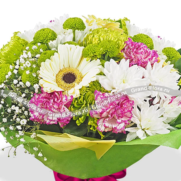 Зеленая долина - букет из гербер, хризантемы и гвоздики