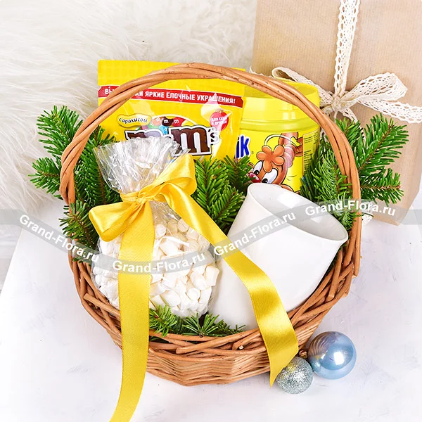 Пушистый снег - корзина с какао и зефиром